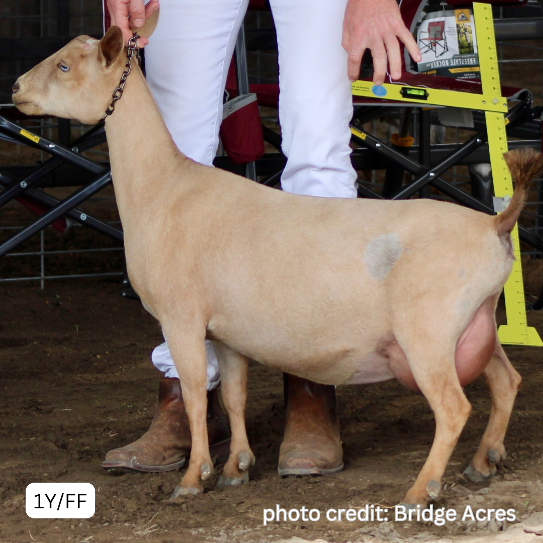 ICE ACRES ARC MOUNT RAINIER 1Y_FF 3.2026 BARN NAME: RAINIERDOB: 1/5/25SIRE: MOON STATION ARCTURUSDAM: WINNING STREAK RM BEACH BUNNYSHOW WINS: L.A. SCORES: ADGA GENETICS LINK 1Y_FF 3.2026 show ring 1Y_FF 3.2026 REAR UDDER ICE ACRES ARC MOUNT RAINIER CONGENITAL MYOTONIA (CM) TEST REPORT 6M 7.15.25 4M 5.2025 rear 4M 5.2025 Progeny