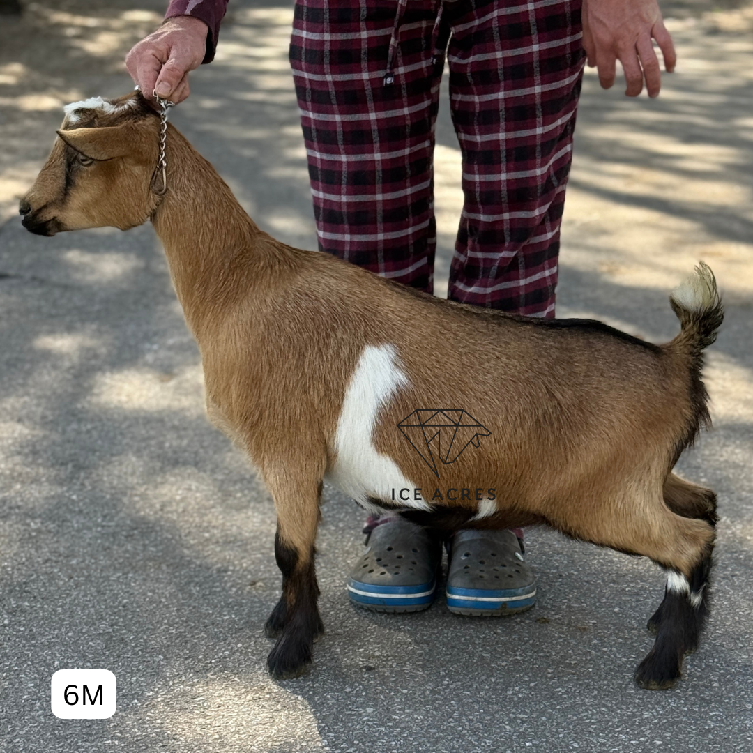 ICE ACRES J MADAME FLEURDELYS 10M 4.2026 BARN NAME: FLEURDOB: 5/23/25SIRE: LIL MTN PJ JIREHDAM: DILL’S NCM MADEMOISELLESHOW WINS: L.A. SCORES: ADGA GENETICS LINK 10M 4.2026 REAR 6M 12.2025 6M 12.2025 FRONT Progeny