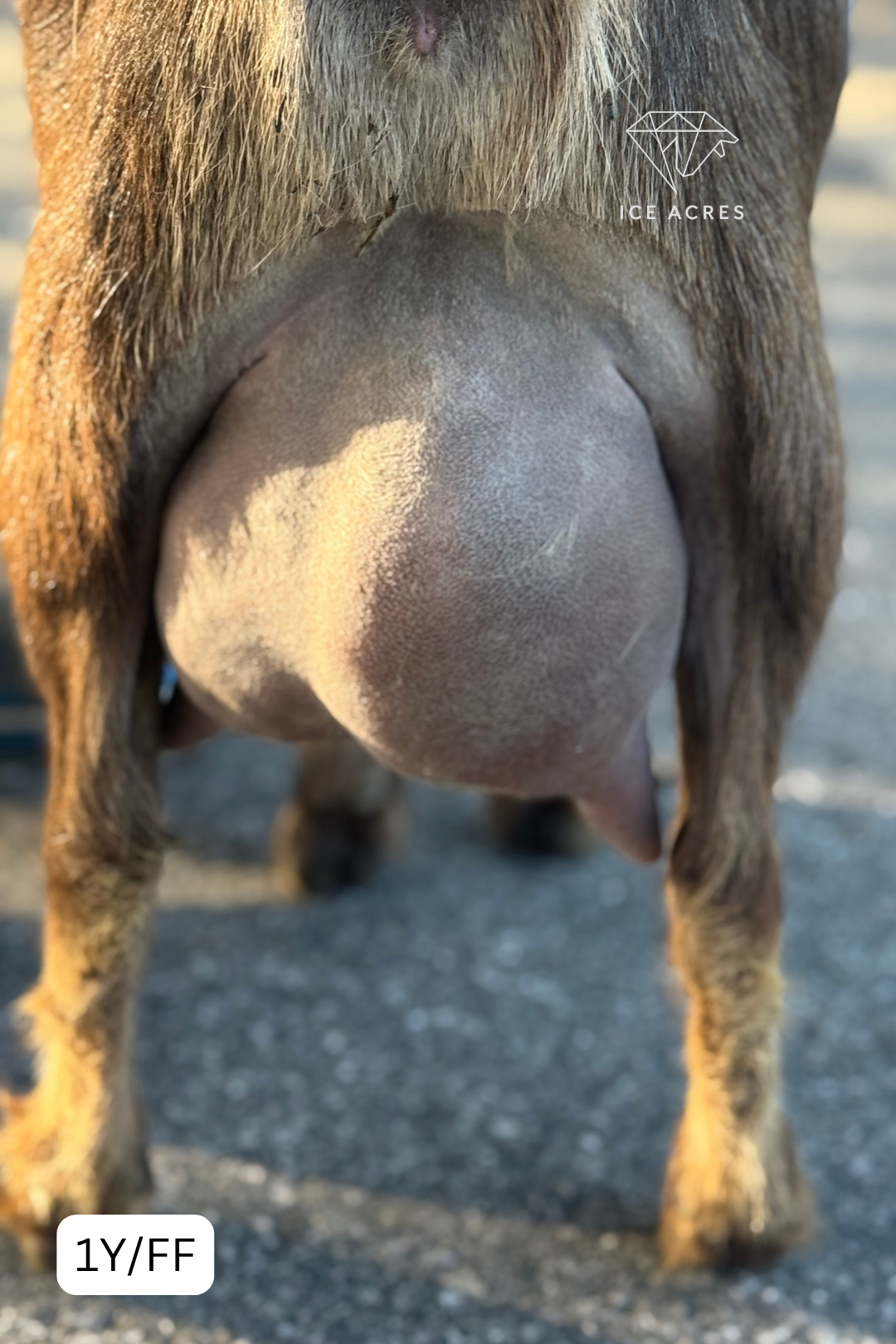 ICE ACRES RD SADE 12.2025 BARN NAME: SADEDOB: 10/22/2024SIRE: TOP SHELF AA RIDE OR DIEDAM: DILL’S NCM I CAN’T DRIVE 55SHOW WINS: L.A. SCORES: ADGA GENETICS LINK 1YFF 12.2025 REAR UDDER 3M 3M REAR Progeny